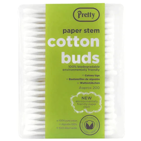 PRETTY COTTON BUDS PAPER STEM 200 PACK - CASE OF 12